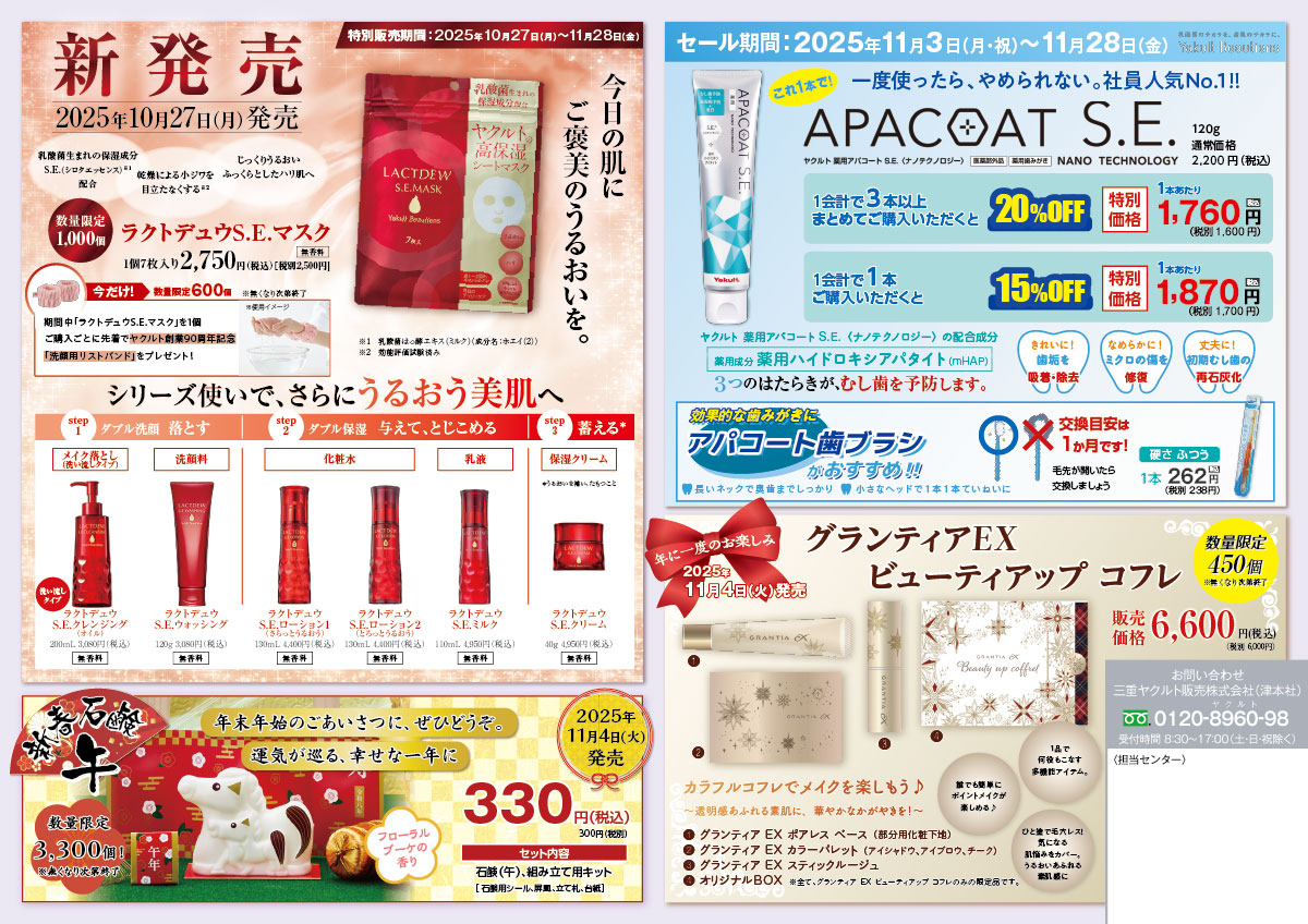 期間限定で、セール販売や季節商品など、三重ヤクルト限定のご案内をしています。