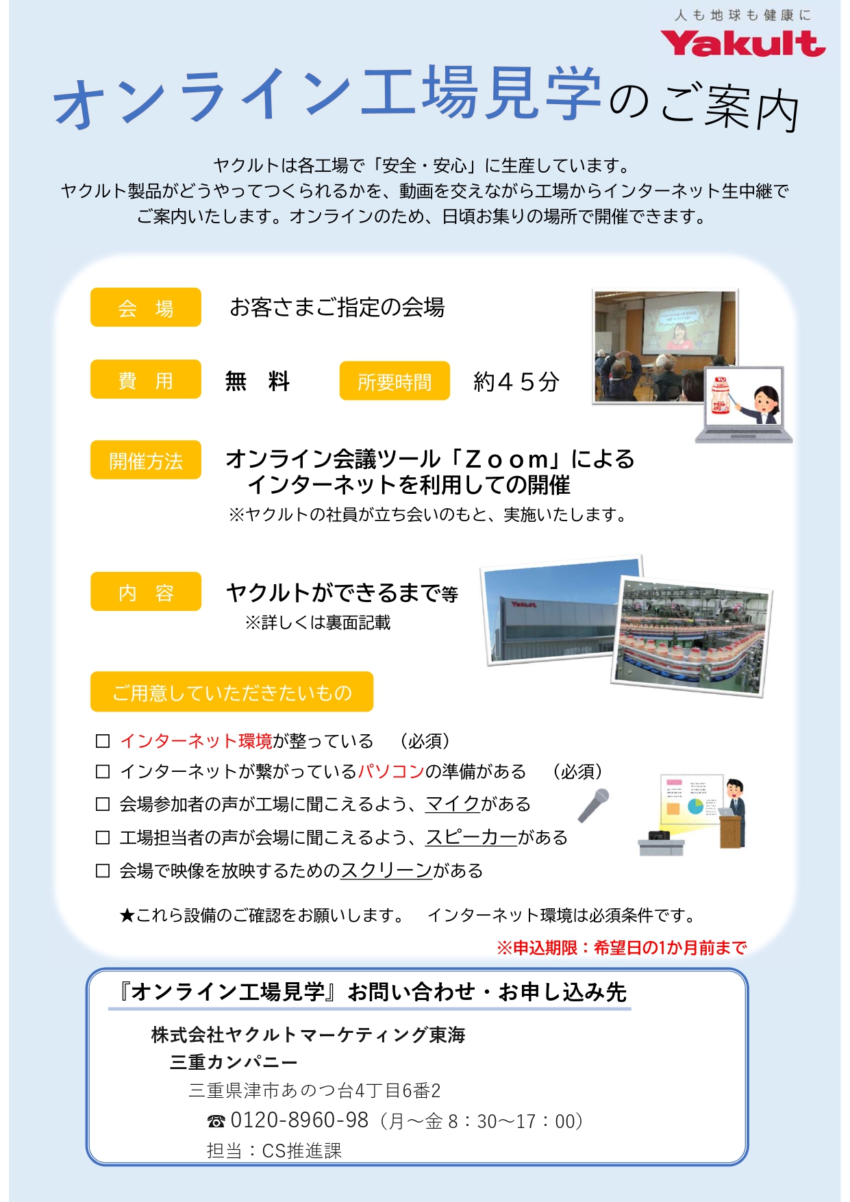 ヤクルト工場で、安全・安心な製品づくりをオンラインにより見学できます。