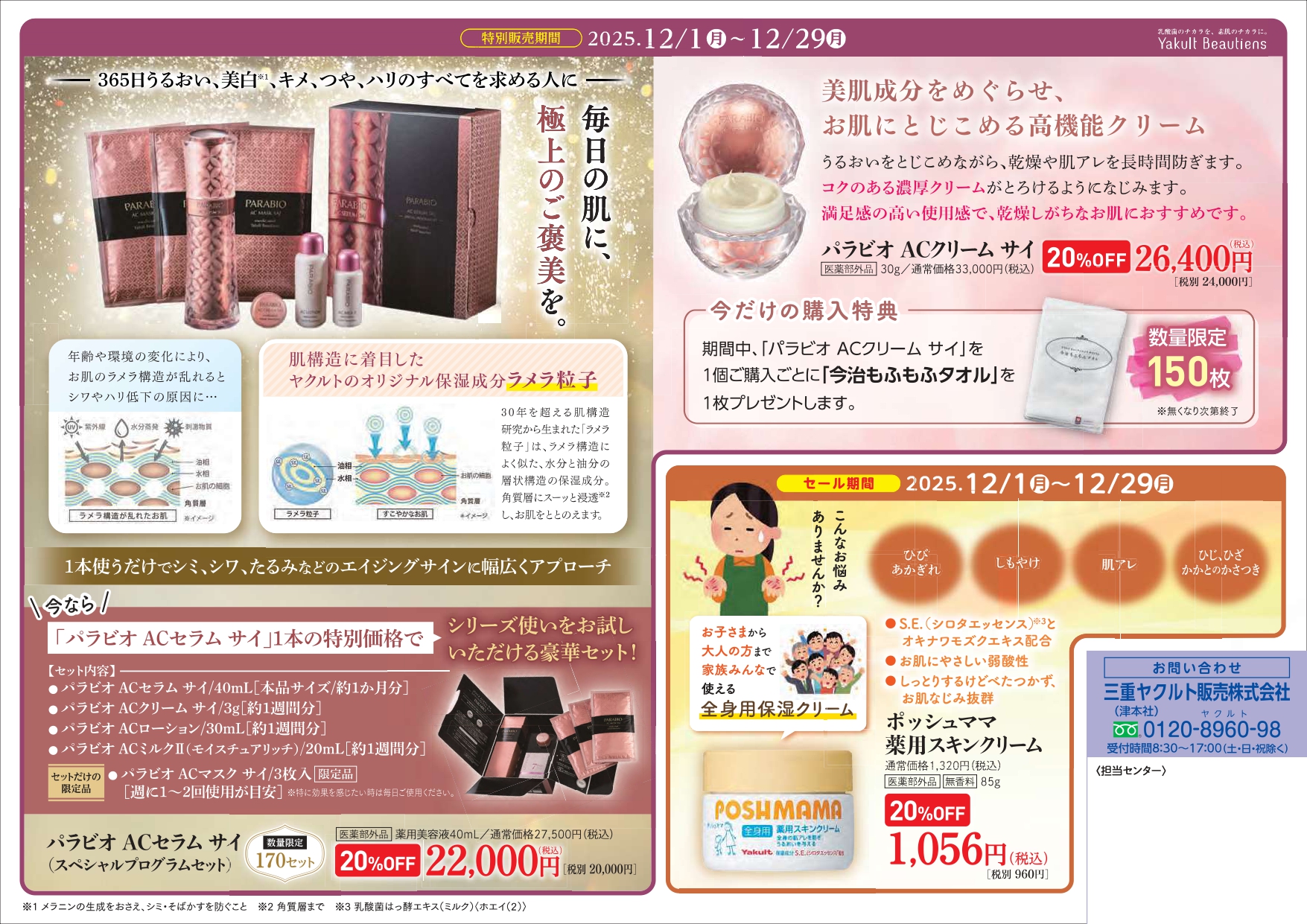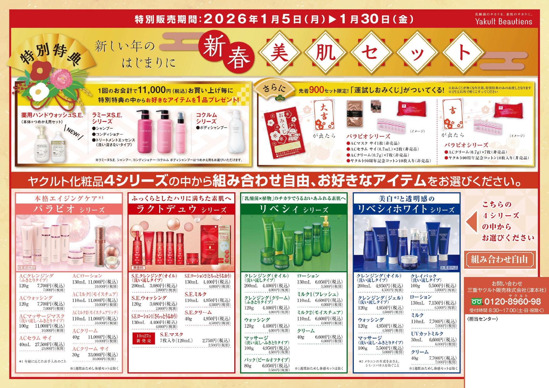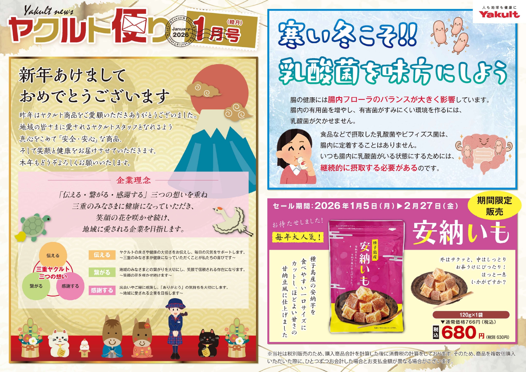期間限定で、セール販売や季節商品など、三重ヤクルト限定のご案内をしています。